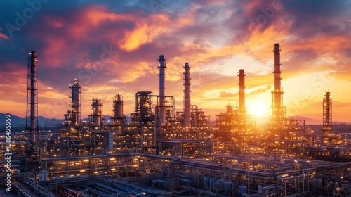 © gentho, Fototapeta premium Industrial refinery complex at sunset (14)