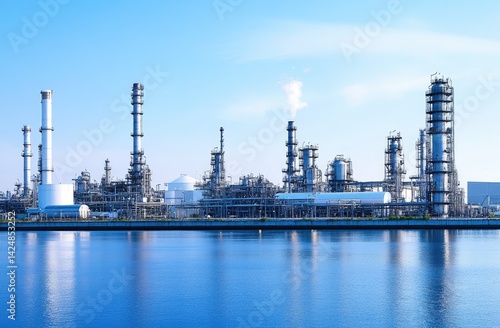 © Kasim, Obraz premium Industrial refinery complex by waterfront.