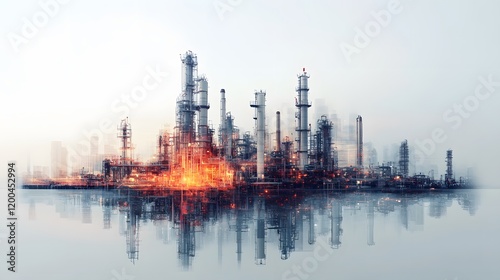 Naklejka premium Industrial Refinery Complex Reflecting in Calm Water