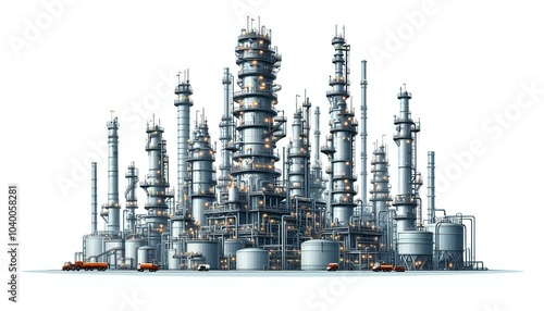 © joe, Obraz premium Industrial Refinery Complex with Mountainous Backdrop