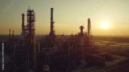 Fototapeta premium Industrial Refinery Sunset Silhouette Complex Structure