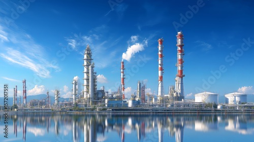 © JWS, Fototapeta premium Industrial Refinery with Tall Chimneys Under Clear Sky