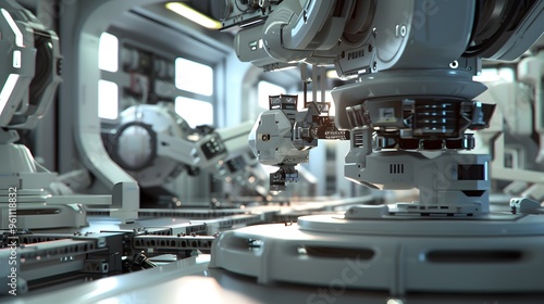 Fototapeta premium Industrial Robot Arm in a Factory Setting