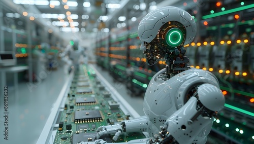 Fototapeta premium Industrial robots symbolize modernity and represent technological progress....