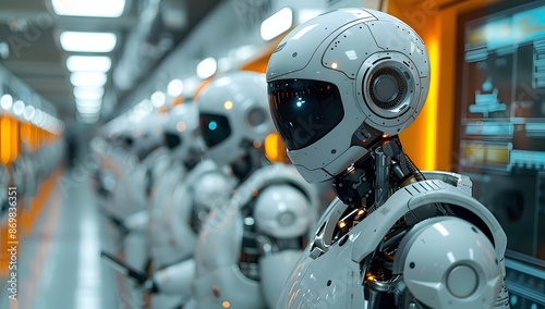 Fototapeta premium Industrial robots symbolize modernity and represent technological progress....