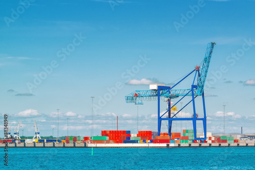 Fototapeta premium Industrial Sea Port with Crane and Cargo Containers
