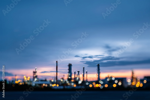 © Frank Parker, Naklejka premium Industrial skyline illuminated at dusk with soft bokeh effect