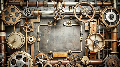 Fototapeta premium Industrial steampunk background featuring gears, pipes, and vintage machinery, steampunk, industrial, background, gears