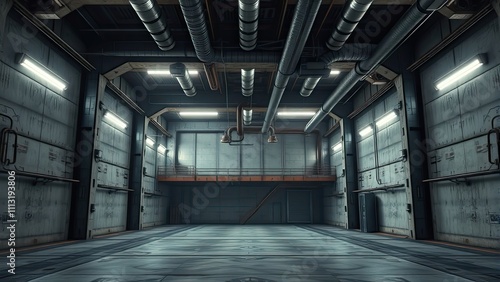 Fototapeta premium Industrial-style concrete background with metal beams , exposed beams, metallic texture, rusty details