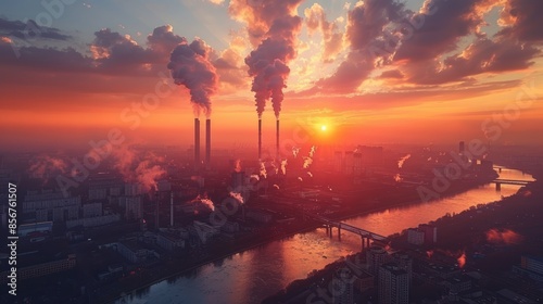 © vixion, Fototapeta premium Industrial Sunset Over a Cityscape