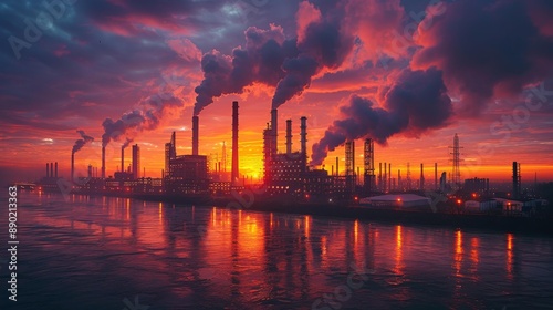 © Tatiana Vagizova, Naklejka premium Industrial sunset scene - generative ai