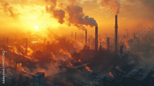 Obraz premium Industrial Sunset: Smoke and Steel Against the Setting Sun