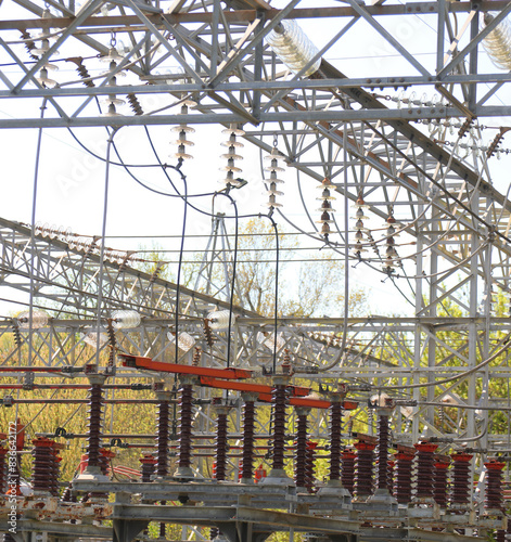Fototapeta premium industrial switches inside a hydroelectric power plant for electricity...