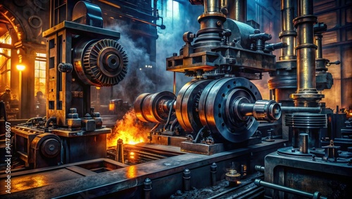 © Four888, Fototapeta premium Industrial Techno Abyss: Dark, pounding, metallic, machinery, abstract shapes