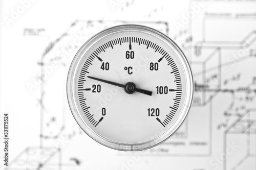 © kocetoiliev, Naklejka premium Industrial thermometer