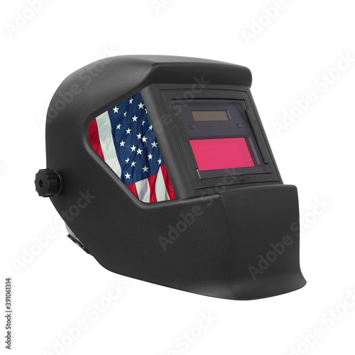 Fototapeta premium Industrial tool - USA Flag Mask Welding machine isolated