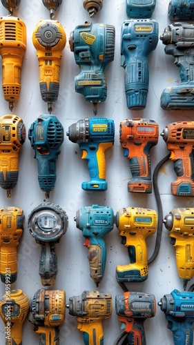 © ตุ้งติ้ง ชุติมา, Naklejka premium Industrial tools and equipment, white background, various repair tools