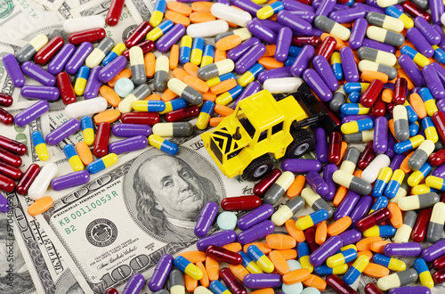 © rmag, Fototapeta premium Industrial tractor toy rake up tablets and pills