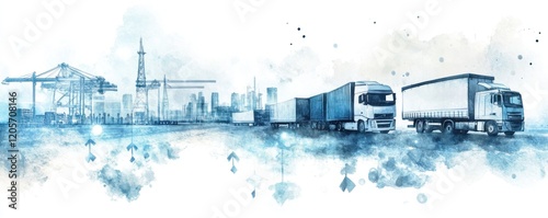 © Thanyaporn, Fototapeta premium Industrial Transport Scene with Trucks and Construction Elements