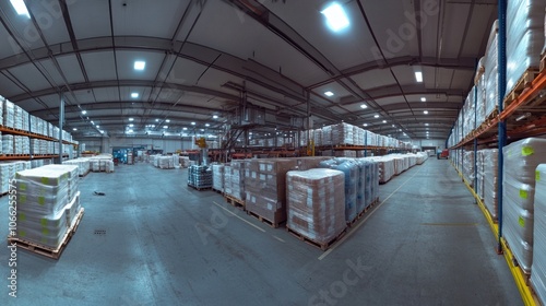 Fototapeta premium Industrial Warehouse Interior with Pallets and Shelving
