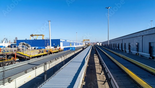 Fototapeta premium Industrial Warehouse Loading Area with Clear Blue Sky