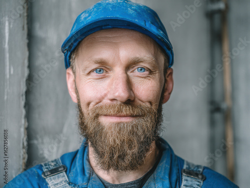 © Chanisa, Fototapeta premium Industrial Worker Portrait in Industrial Environment with Focus on Personal Protective Equipment and Technical Composition