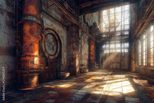 © MVProductions, Fototapeta premium industry metallurgical plant interior, old and rusty.