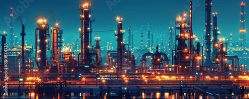 © Aldi, Fototapeta premium Industry pipeline transport petrochemical, gas and oil processing, furnace factory line, rack of heat chemical manufacturing, equipment steel pipes plant