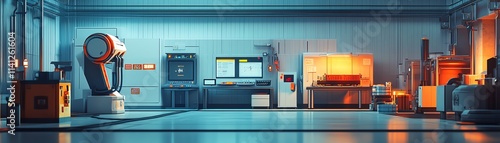 Naklejka premium Industry 40 smart factory interior featuring advanced automation