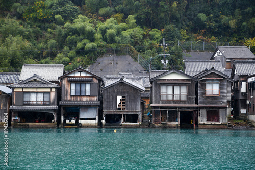 © saitharn, Fototapeta premium Ine Boathouse is traditional Fisherman Village on a rainy day of Kyoto, JAPAN.