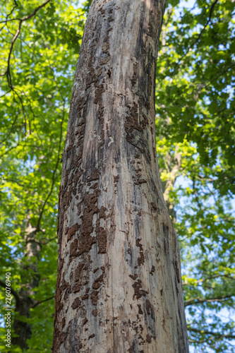 © mimacz, Obraz premium infected tree bark beetle with fallen bark