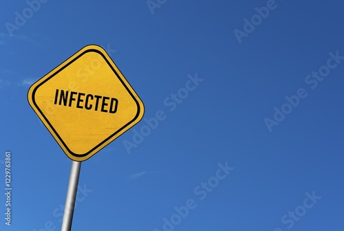 © Markus Beck/imageBROKER, Fototapeta premium Infected, yellow sign with blue sky