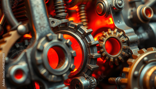 © Kavindu, Fototapeta premium Inferno of Abstract Gears and Pipes