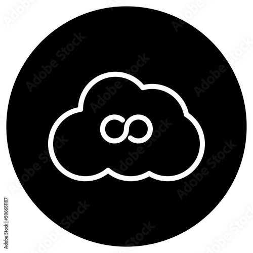Naklejka premium Infinity, cloud simple icon vector. Flat design. White icon on black circle. White background.ai