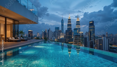 © ARI, Fototapeta premium Infinity pool luxury apartment kuala lumpur skyline view