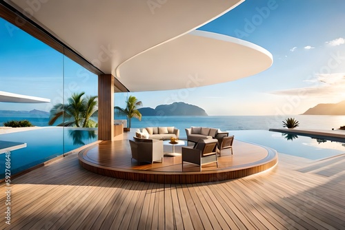© ArtVibeHive, Fototapeta premium Infinity Pool mit Cocktailbar