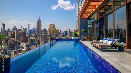 Obraz premium Infinity Pool Overlooking New York City Skyline