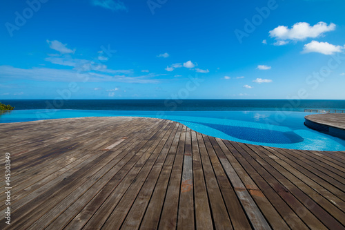© Gustavo, Naklejka premium Infinity pool with wood deck