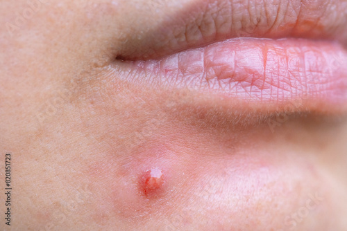 Fototapeta premium Inflamed acne that appears on a woman's face