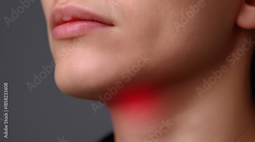 Obraz premium Inflammation: A close-up view highlights the subtle inflammation under the chin of the human model, with a visual indicator signifying discomfort.