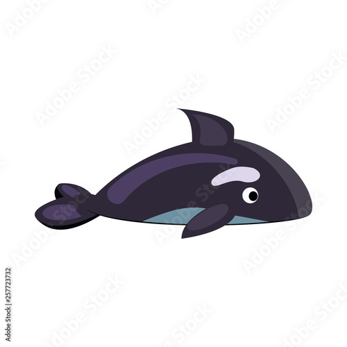 Naklejka premium Inflatable dolphin. Swimming toy, lifebuoy, lifesaver. Vector illustration can be used for topics like vacation with children, pool, beach