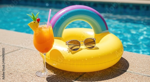 © john, Obraz premium Inflatable pool float by the water