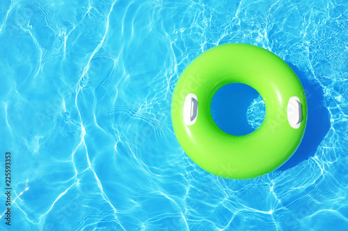 © New Africa, Naklejka premium Inflatable ring floating in swimming pool on sunny day, top view with space for text