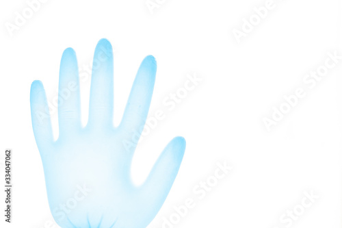 © Stockgurulab, Fototapeta premium Inflated blue rubber glove isolated on white background