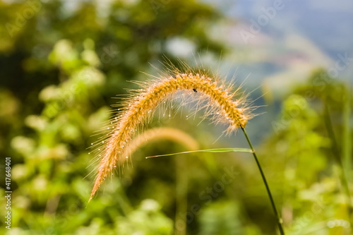 Fototapeta premium Inflorescence with dew drops close-up on the background of greenery in Sri Lanka