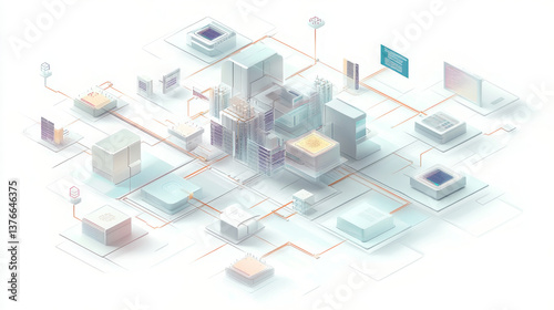 © Sehraye, Obraz premium Info blocks, direction of data transfer. Big data array in blockchain concept. 3D illustration hi-tech