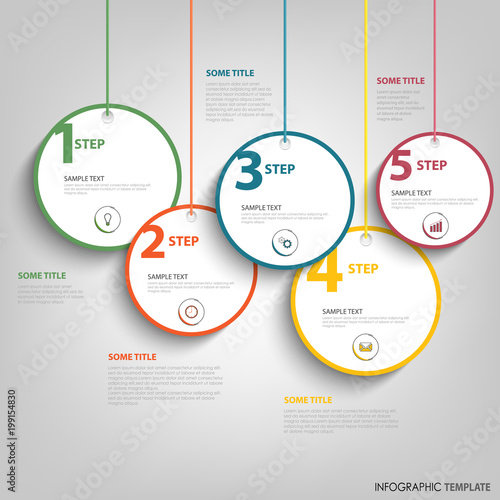 © plisman, Fototapeta premium Info graphic with hanging design round labels template
