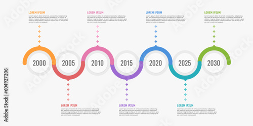 Naklejka premium Infographic colorful company timeline data over 7 years. Vector illustration.