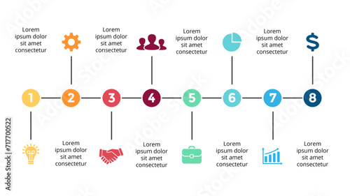 © Faraz-9461894, Naklejka premium Infographic design template, Timeline concept with years, Can be used for workflow layout, diagram, banner, webdesign, presentations, banner, flow chart, concept with 5 steps. Vector illustration