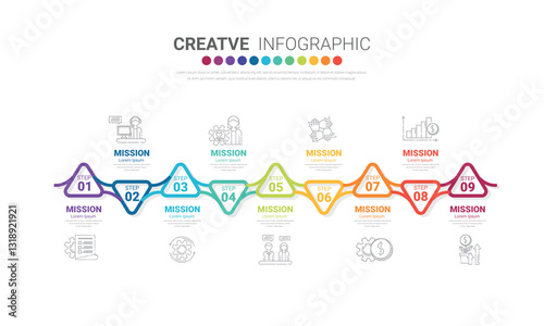 Naklejka premium Infographic design template with 9 options, Can be used for process diagram, presentations, workflow layout, banner, flow chart, info graph.